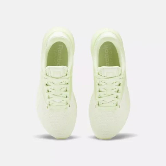 Believe it or not, there’s a training shoe you can actually run in. Meet the women’s Reebok Nano X3 training shoes with the all new Lift and Run Chassis system. A dome-shaped heel piece compresses under load when lifting to create a stable platform, then softens when you push off to run. It all rides on award-winning Floatride Energy Foam that gives you lightweight cushioning to make that run the easiest part of the workout.