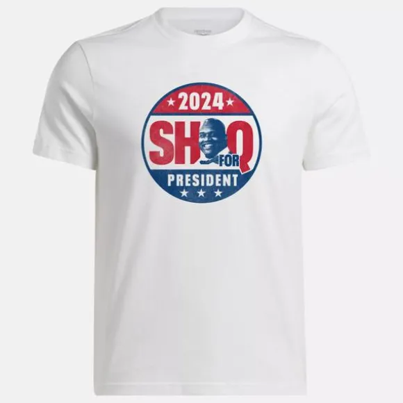 In his celebrated career, Shaq won multiple championships, set scoring records and gave us iconic shoes like Shaq Attack and Shaqnosis. This Reebok t-shirt celebrates his new role as President of Reebok basketball. Playful graphics on the chest nod to his leadership as Reebok makes its next play for basketball greatness.