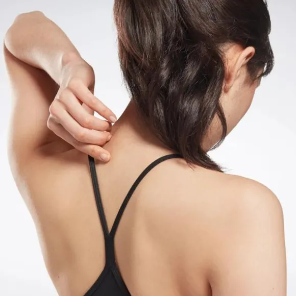 Wear this Reebok tri-back sports bra and put a little style in your training session. The soft, V-neckline creates a flattering look. The straps form a triangle pattern out back and a keyhole cutout below add breathability. Speedwick tech keeps you comfortable and dry as you lift.